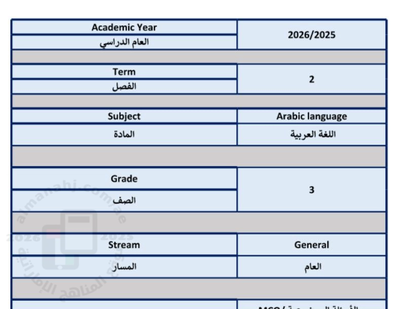 تم إيجاد الملف: هيكل الامتحان النهائي للفصل الدراسي الثاني