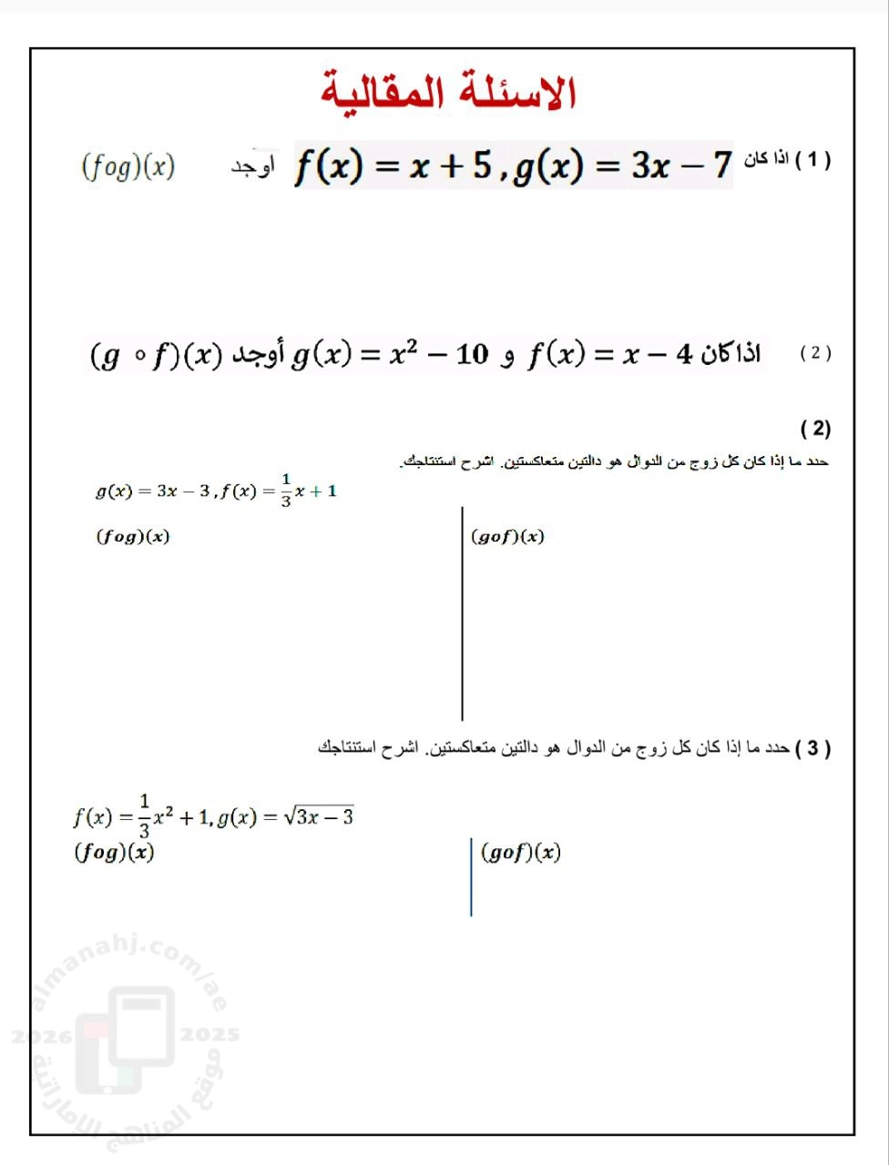 | ملزمة وحدة الدوال والعلاقات العكسية والجذرية ووحدة الدوال والعلاقات الأسية واللوغاريتمية وفق الهيكل - إعداد: مدرسة أبو عبيدة بن الجراح | ||