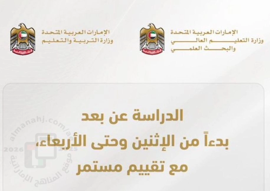 | أعلنت وزارة التربية والتعليم ووزارة التعليم العالي والبحث العلمي عن قرار تحويل الدراسة إلى نظام التعلم عن بعد وذلك ابتداءً من يوم الإثنين الموافق 2 مارس 2026 وحتى الأربعاء الموافق 4 مارس 2026، للطلبة والكادر التربوي والإداري في جميع المدارس الحكومية والخاصة والجامعات على مستوى الدولة. على أن يتم إعادة التقييم للوضع الراهن خلال أيام الأسبوع في حال استدعت الحاجة إلى تمديد المدة ----- المصدر وزارة التربية و التعليم | ||
