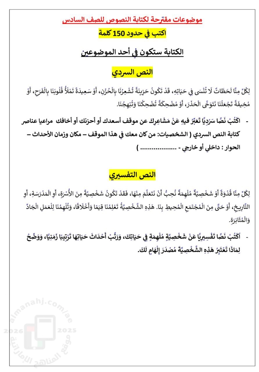 | موضوعات مقترحة لكتابة النصوص - إعداد: مدرسة الوقن | ||