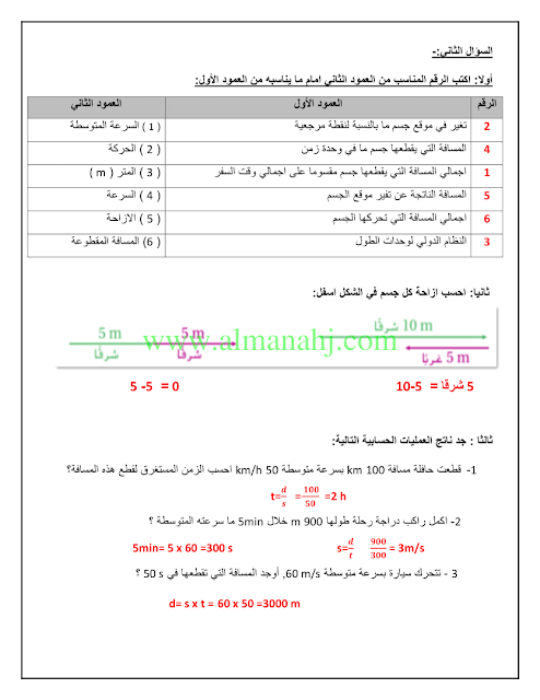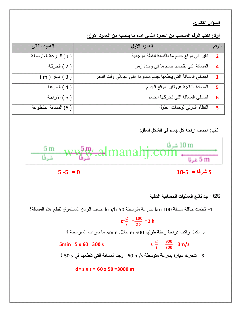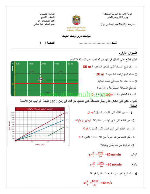 معلومات الملف: الصف التاسع, الفصل الثاني, علوم, 2017-2018, مراجعة درس وصف الحركة | |||