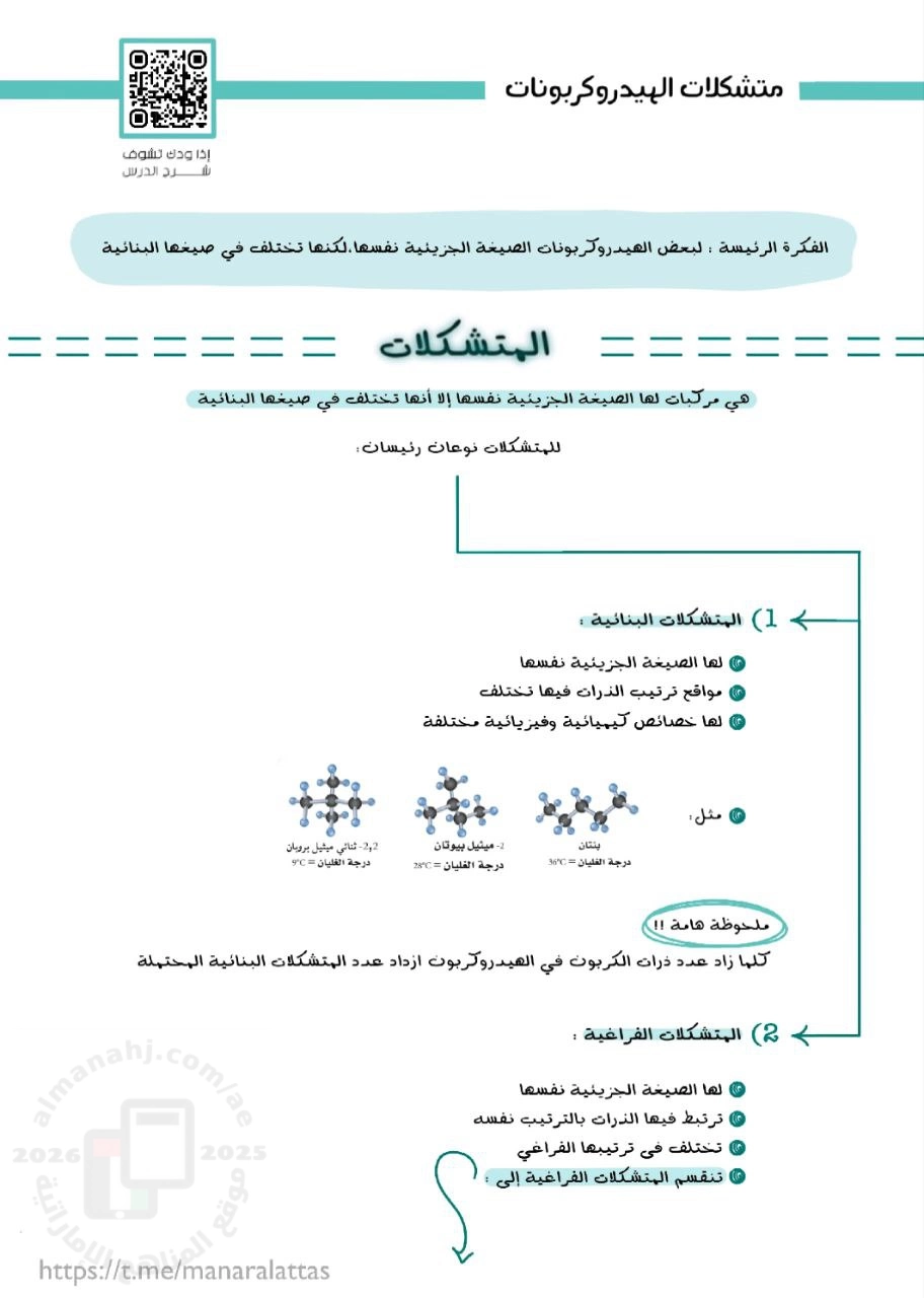 | ملخص درس متشكلات الهيدروكربونات من وحدة الهيدروكربونات - إعداد: منار العطاس | ||