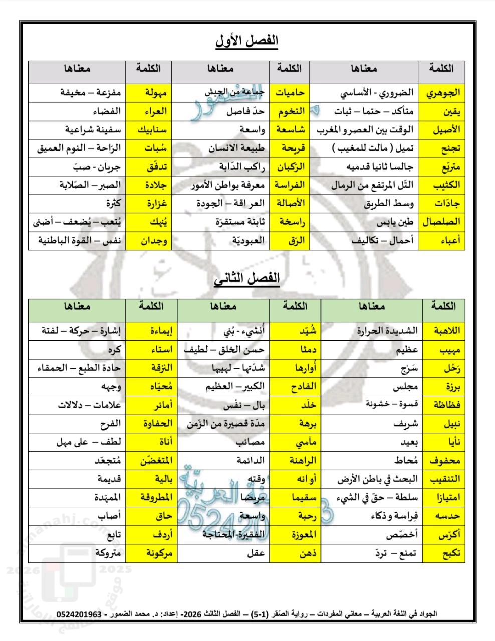 | معاني المفردات في رواية الصقر الفصول من الأول حتى الخامس - إعداد: محمد الضمور | ||