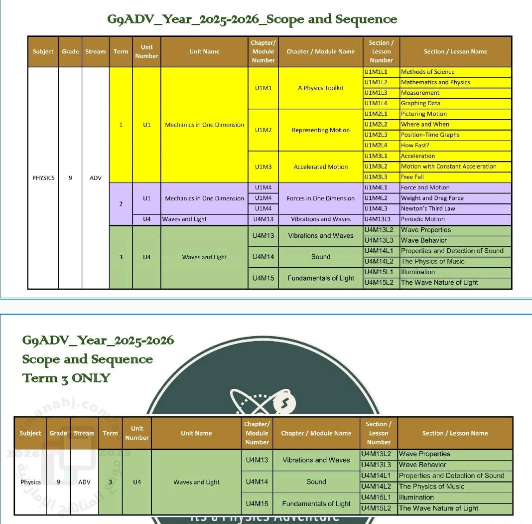 منهج انجليزي الصف التاسع المتقدم فيزياء الفصل الثالث