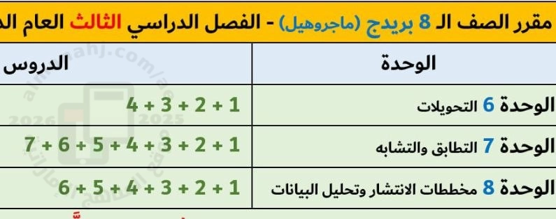 معلومات الملف: مقرر الوحدات والدروس المطلوبة في الفصل الثالث منهج بريدج Bridge الوحدة 6: التحويلات | ||