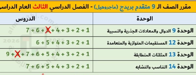 | السابق: مقرر الوحدات والدروس المطلوبة للفصل الثالث منهج انسباير | الملف الحالي: 38829 | أنت تتصفح الملف الأخير في الصف التاسع المتقدم |