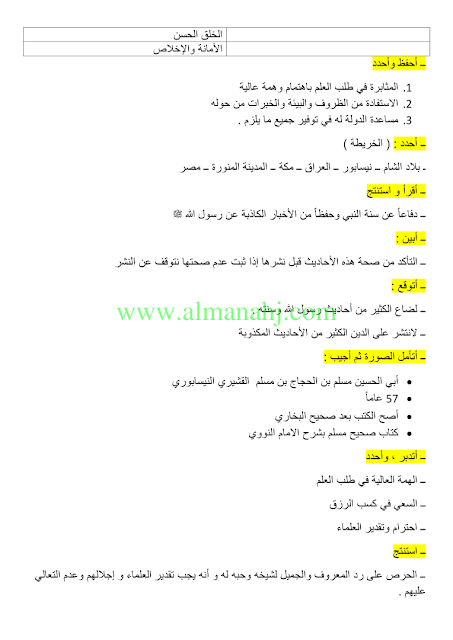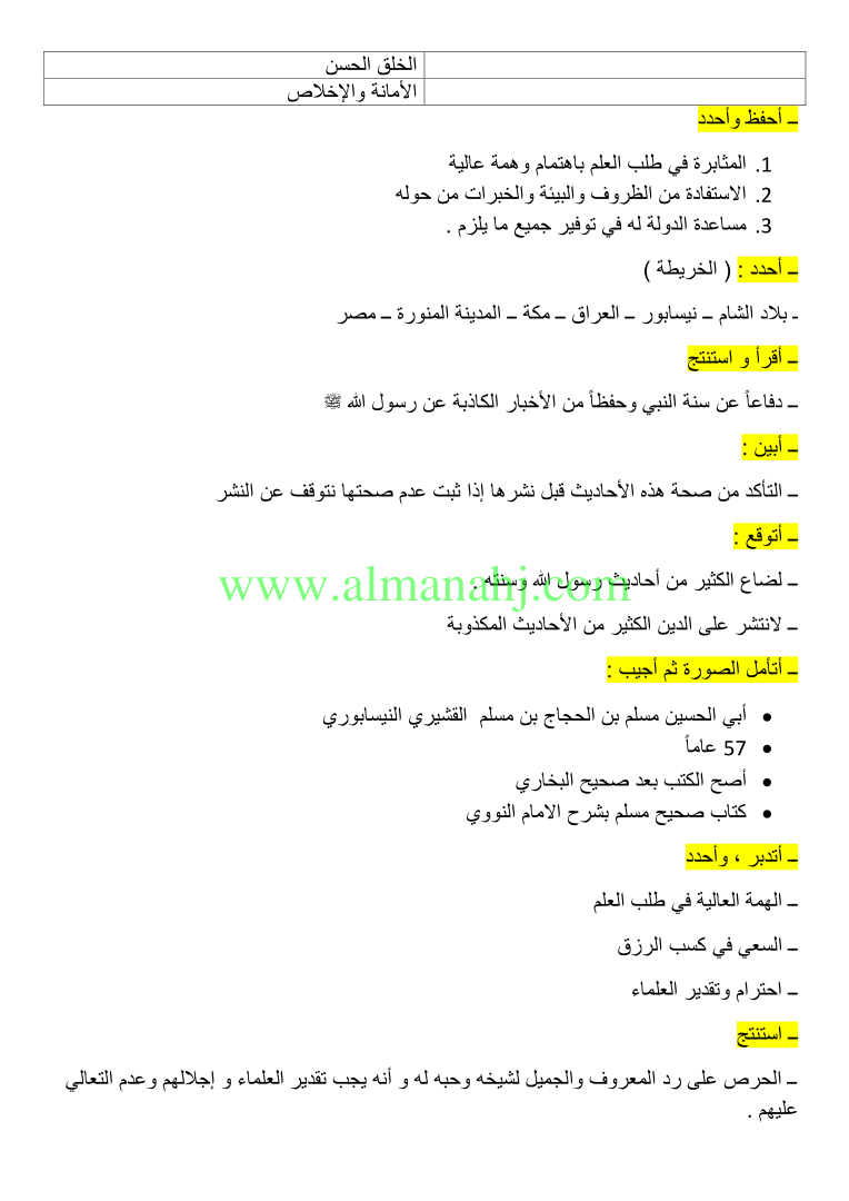 معلومات الملف: الصف التاسع, الفصل الثاني, تربية اسلامية, 2017-2018, الامام مسلم | |||