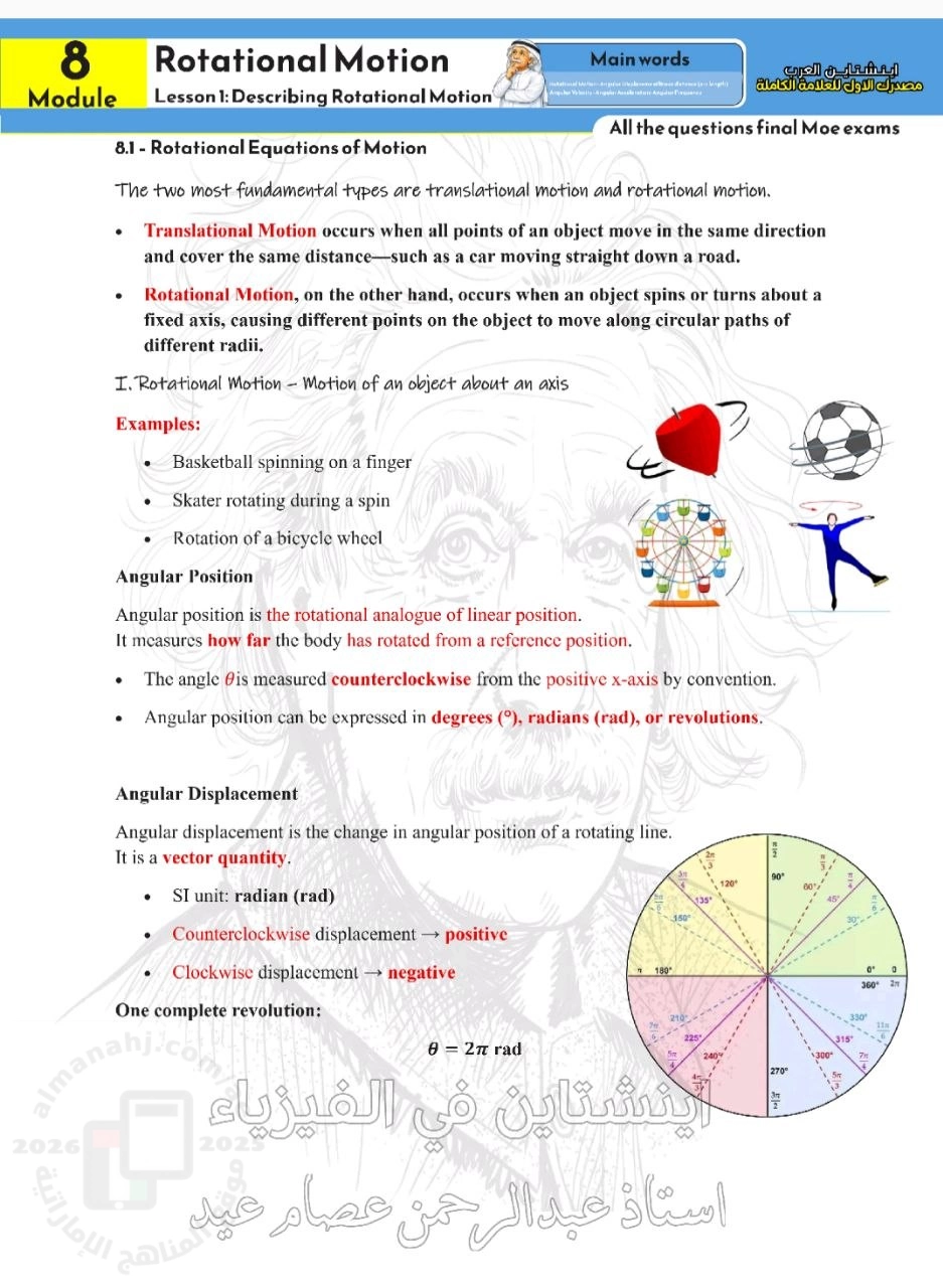5. الصف الحادي عشر المتقدم, فيزياء, أوراق عمل الوحدة الخامسة Rotational Motion منهج انسباير Inspire