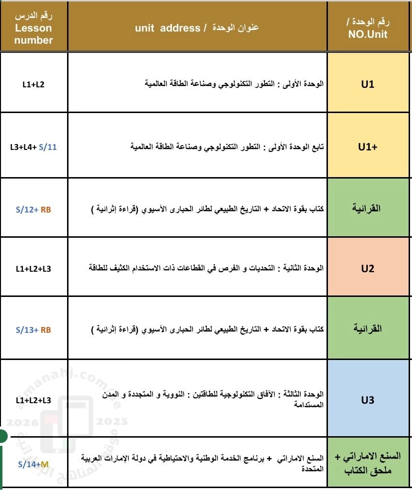 معلومات الملف: الخطة الفصلية الوزارية و توزيع الدروس المطلوبة على الأسابيع الدراسية و الحصص و تشمل الوحدات التالية : الوحدة الأولى : التطور التكنولوجي و صناعة الطاقة العالمية | ||