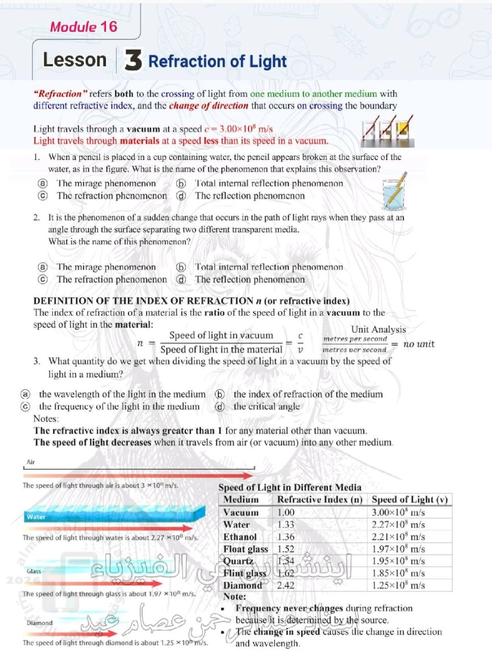 رابط تحميل وعرض ( أوراق عمل الدرس الثالث Refraction of light منهج انسباير Inspire )