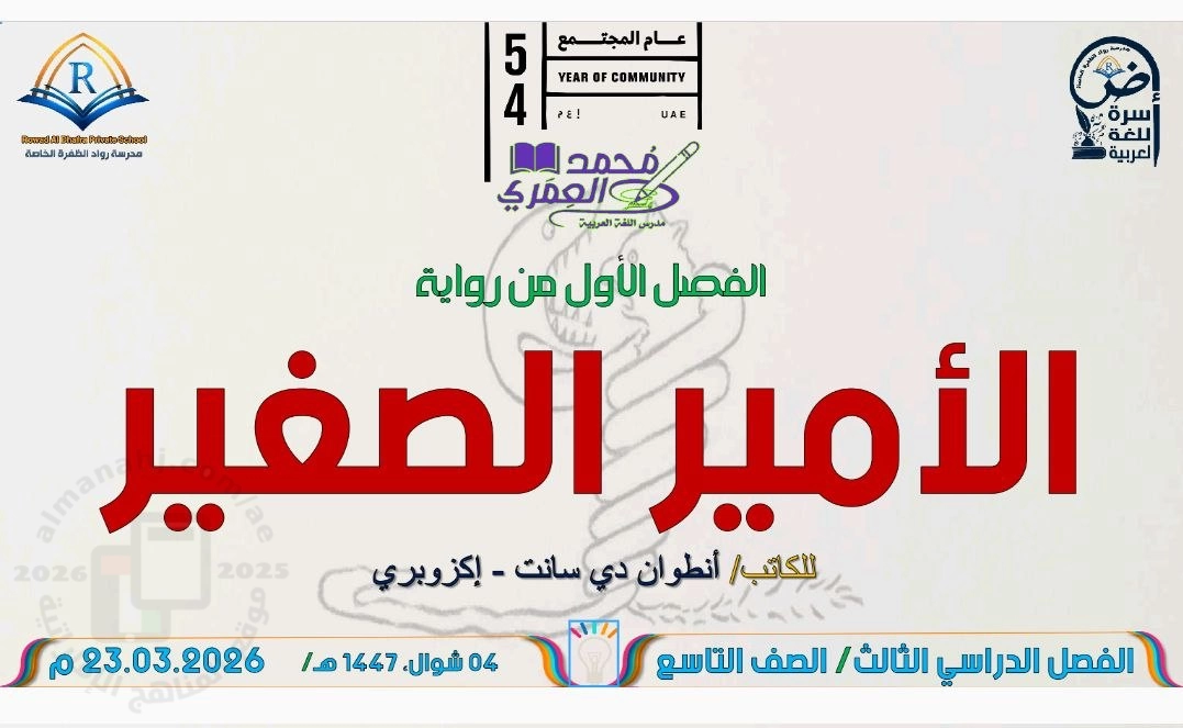 | أهلاً بكم جميعاً طلاباً ومدرسين وأهالي طلبة ومهتمين، في قسم دولة الإمارات ، نحن الآن في الفصل الثالث من العام الدراسي 2025/2026 وتاريخ اليوم 2026/03/23 م | |