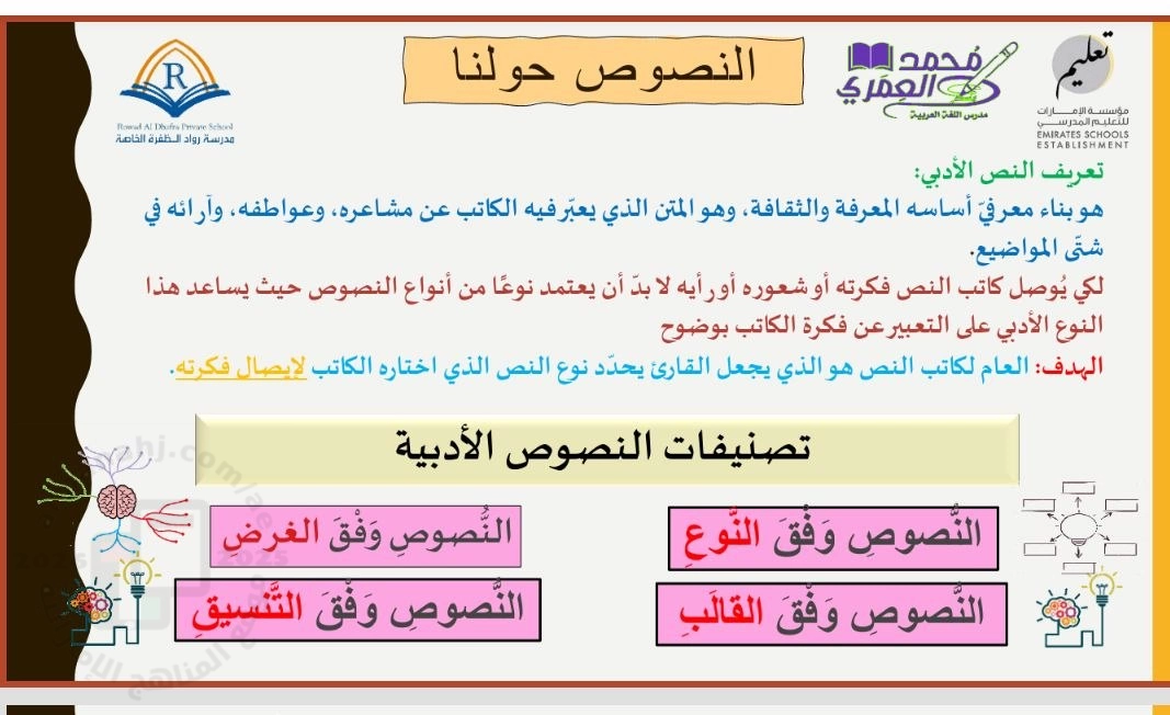 | ملخص درس النصوص من حولنا 3 - إعداد: محمد العمري | ||