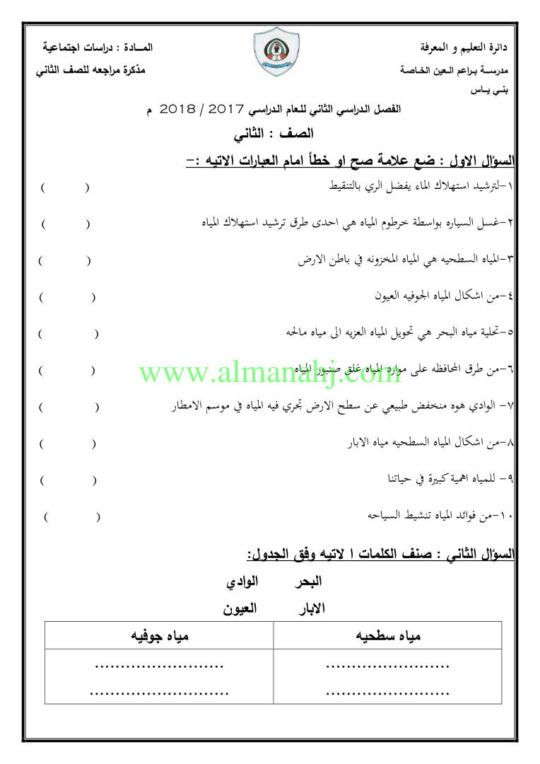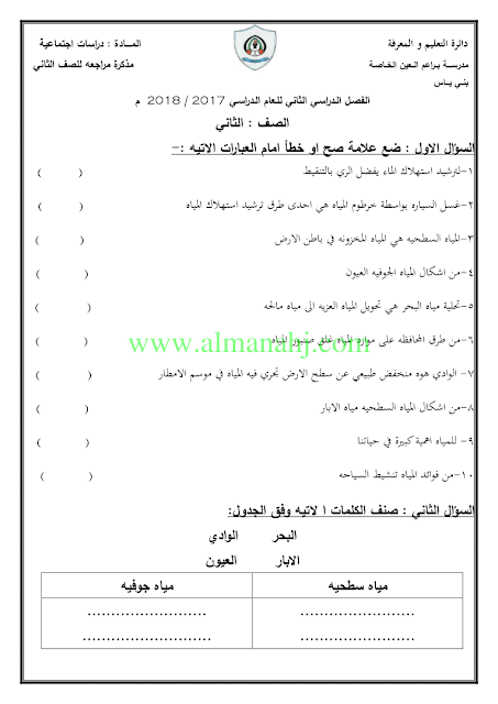 معلومات الملف: الصف الثاني, الفصل الثاني, اجتماعيات, 2017-2018, مذكرة مراجعة | |||