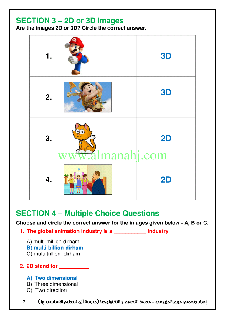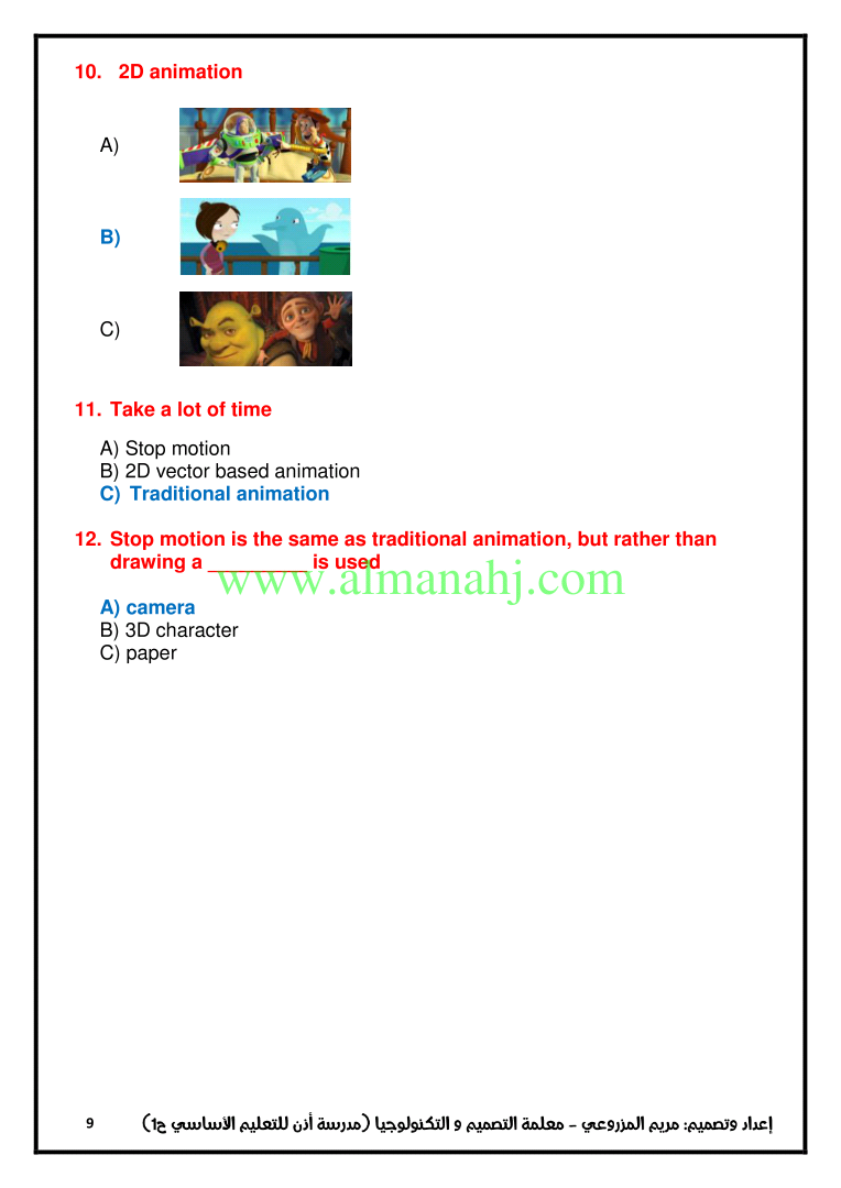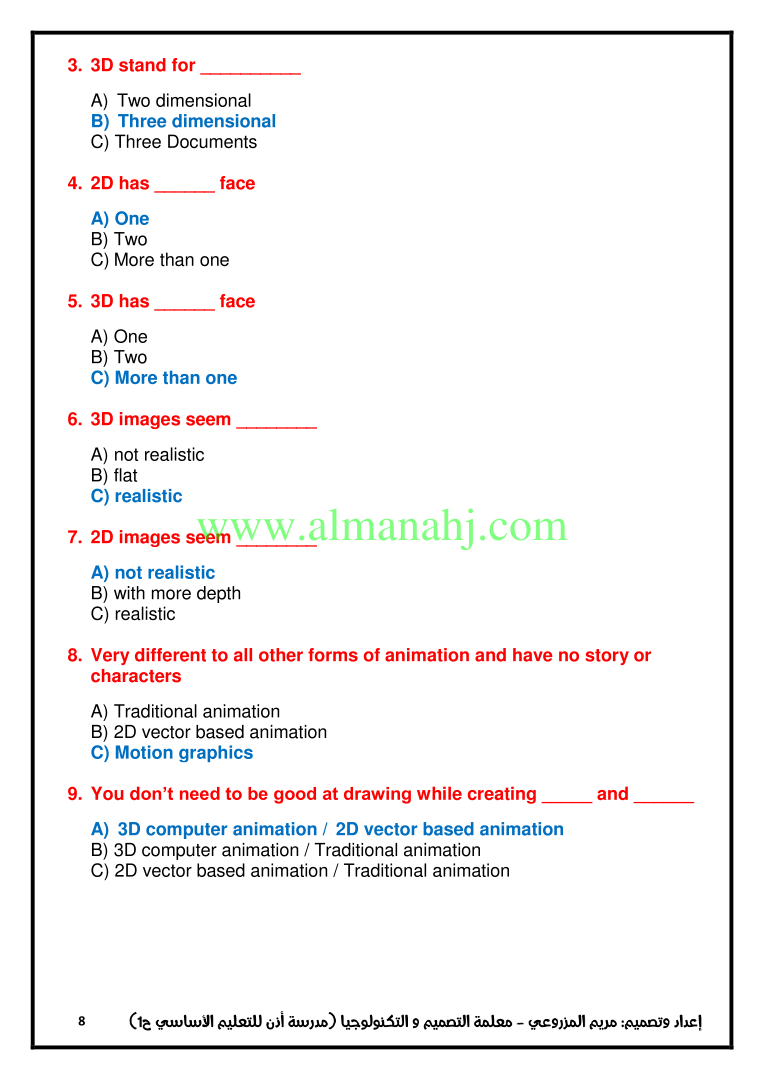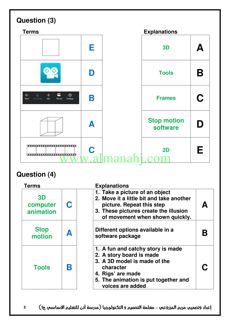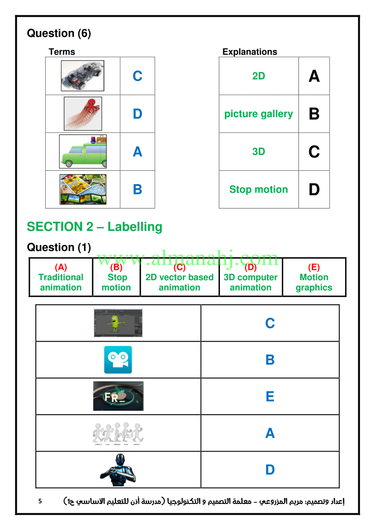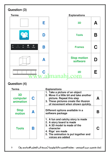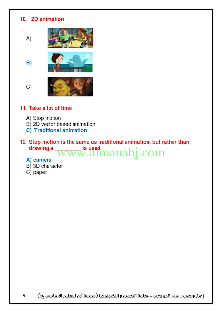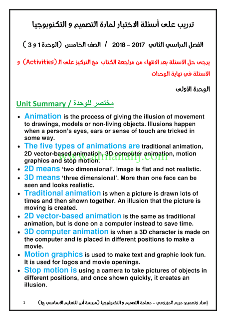 تصميم وتكنوبوجيا تدريب على اسئلة الاختبار لمادة التصميم والتكنوبوجيا الفصل الثاني الوحدة 1 و3 | |||