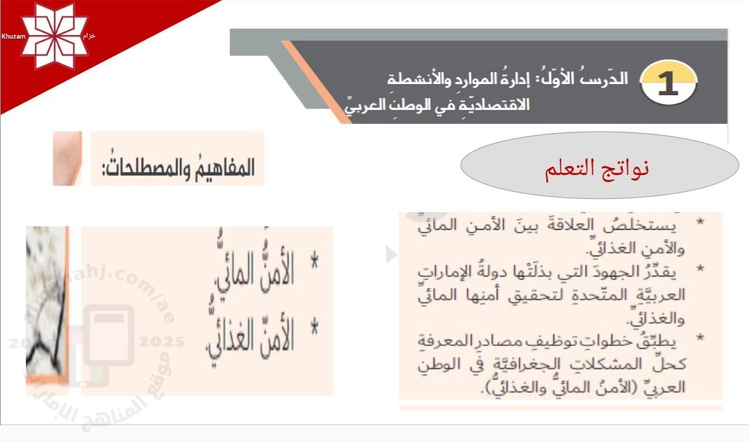 معلومات الملف: عرض بوربوينت درس الأمن المائي و الغذائي نواتج التعلم : | ||