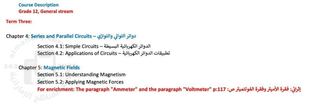 | السابق: ملزمة الوحدة الرابعة Series and Parallel Circuits دوائر التوالي والتوازي | الملف الحالي: 38982 | أنت تتصفح الملف الأخير في الصف الثاني عشر العام |