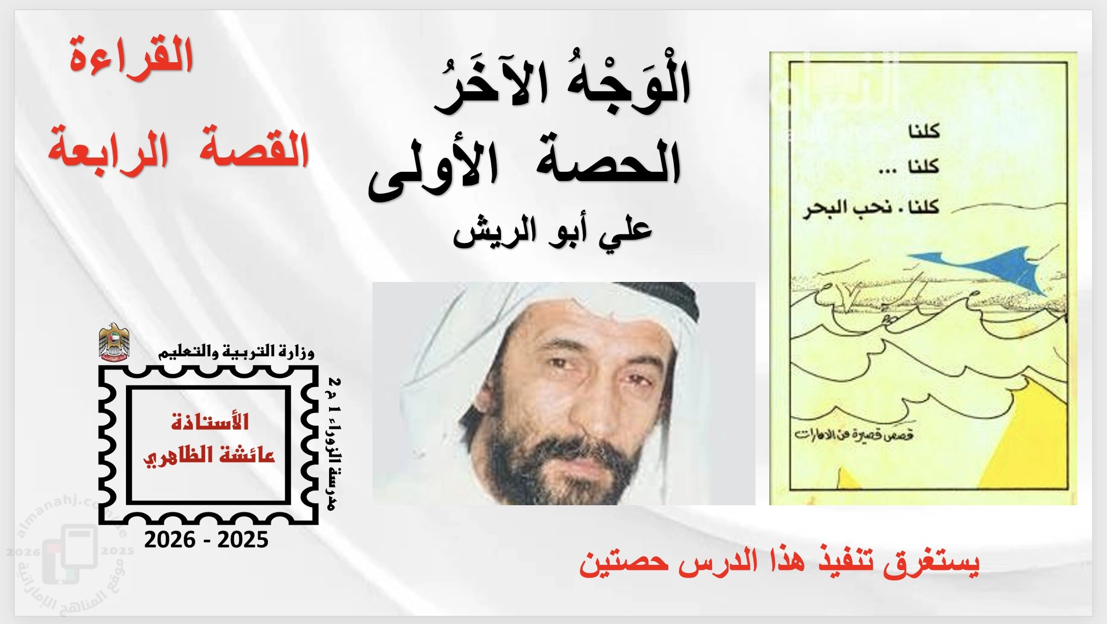 عرض بوربوينت القراءة القصة الرابعة درس الوجه الآخر الحصة الأولى للكاتب علي أبو الريش
