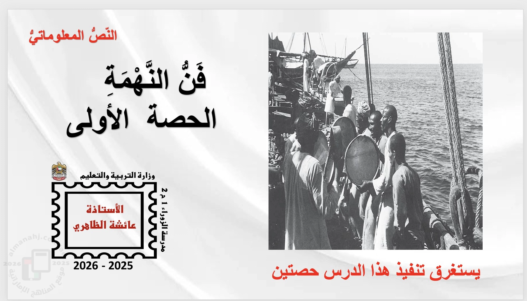 | اضغط هنا لتحميل وعرض ( عرض بوربوينت النص المعلوماتي درس فن النهمة الحصة الأولى ) | |||