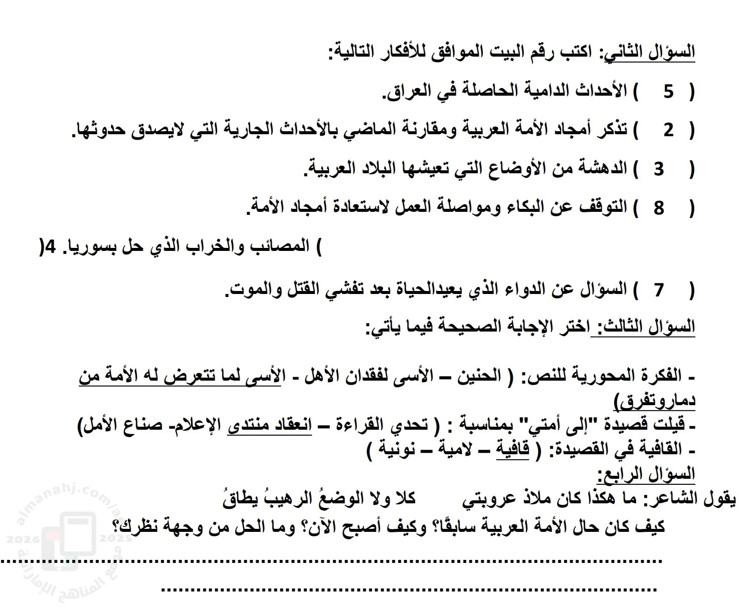 | 8. حل مراجعة النص الشعري وفق الهيكل الوزاري القسم الورقي