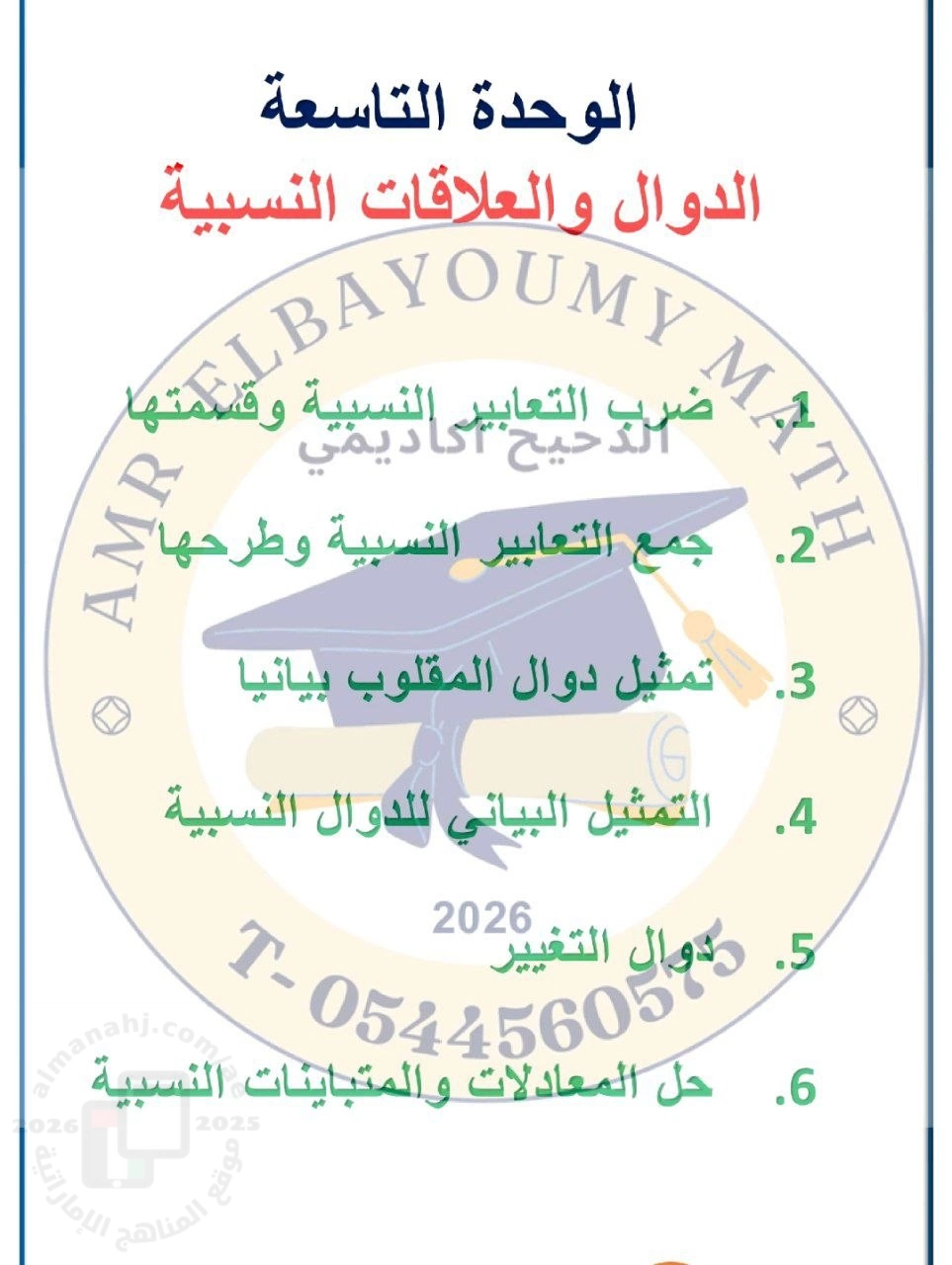 | مذكرة شاملة الوحدة التاسعة الدوال والعلاقات النسبية عمرو البيومي | ||