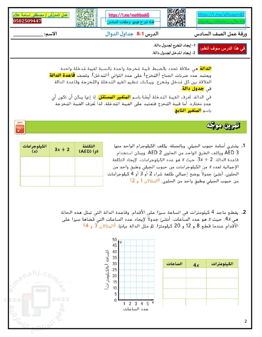 | حل تدريبات الدرس الأول جداول الدوال من الوحدة الثامنة الدوال والمتباينات مصطفى أسامة علام | ||