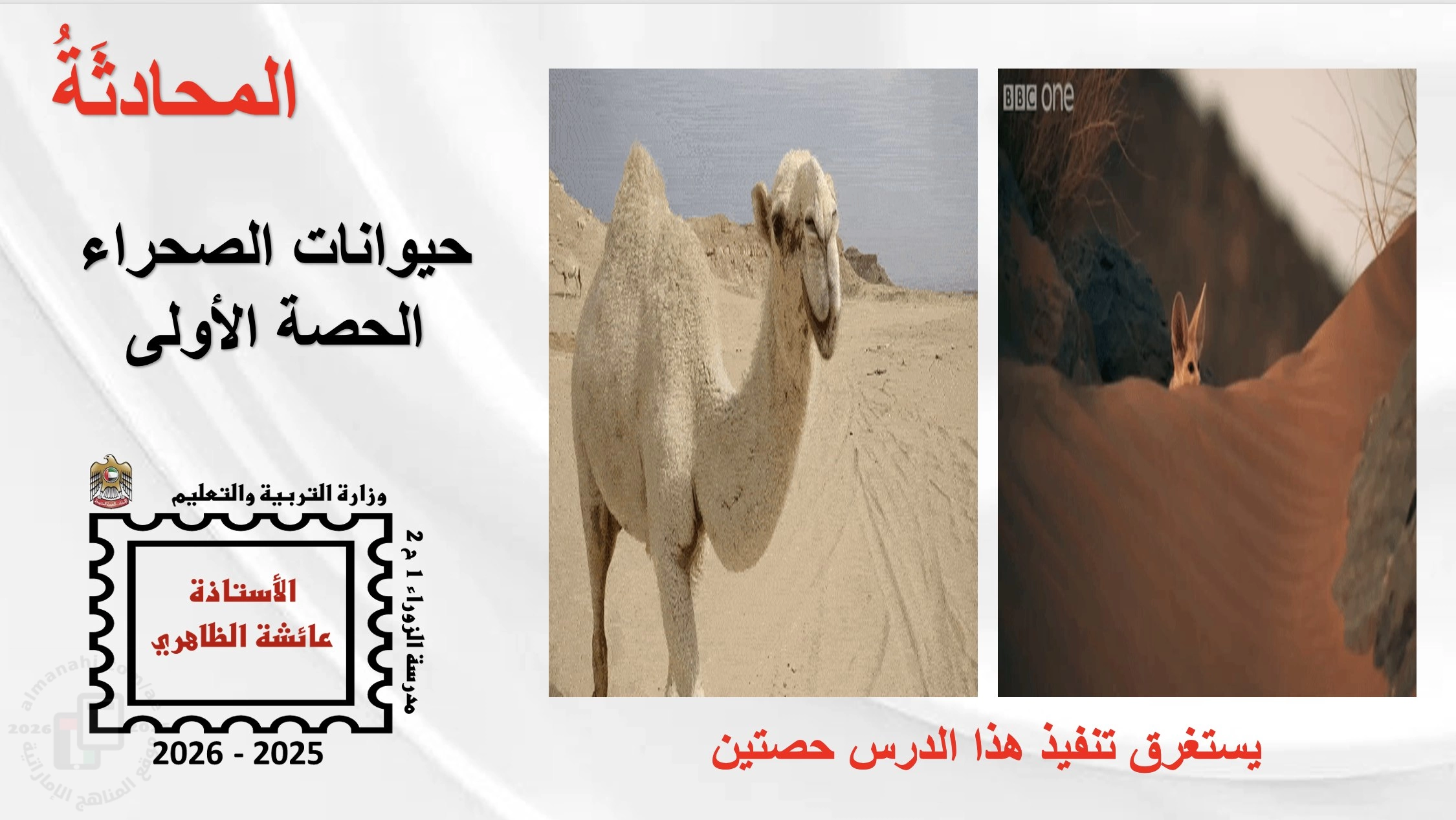 نقدم لكم ملف يتضمن عرض بوربوينت المحادثة درس حيوانات الصحراء الأولى