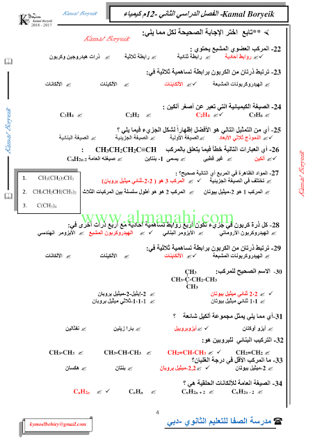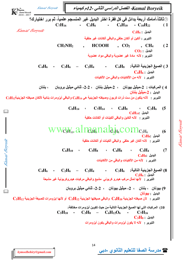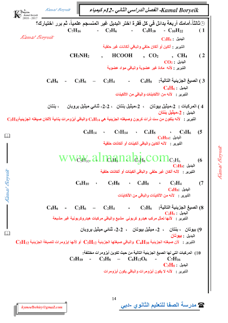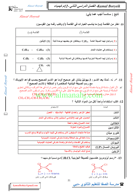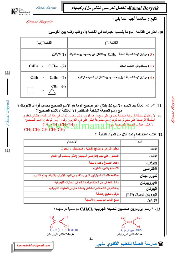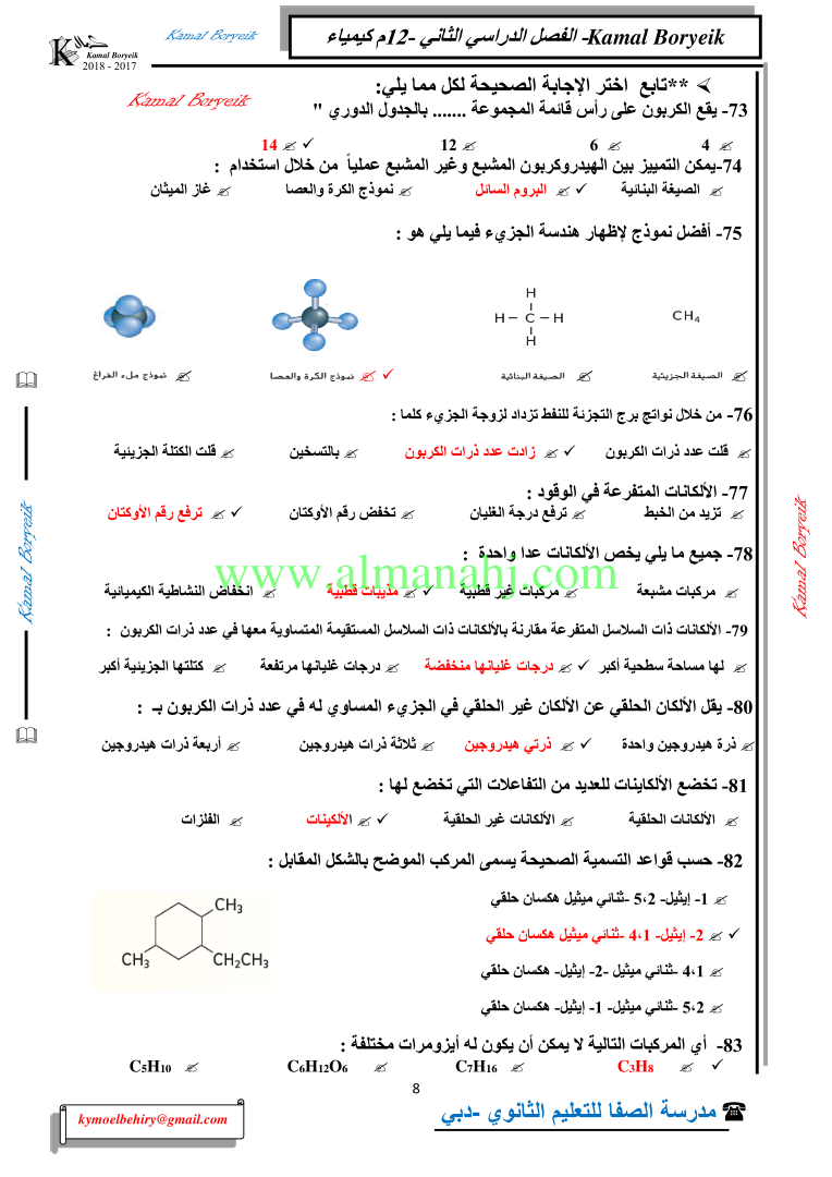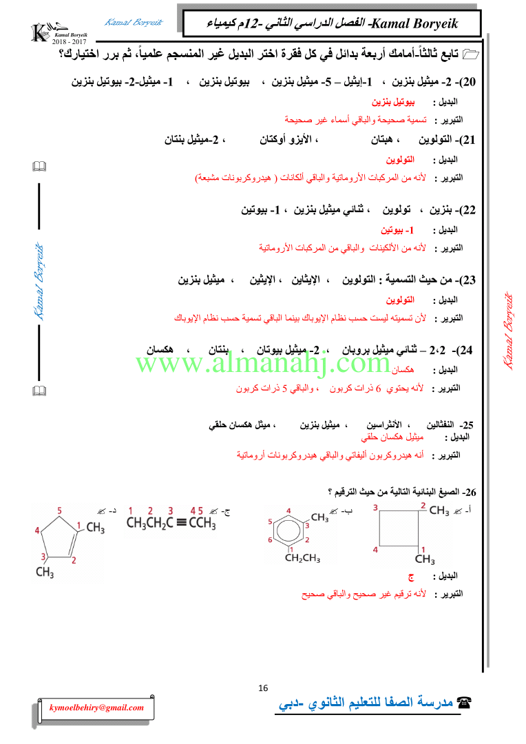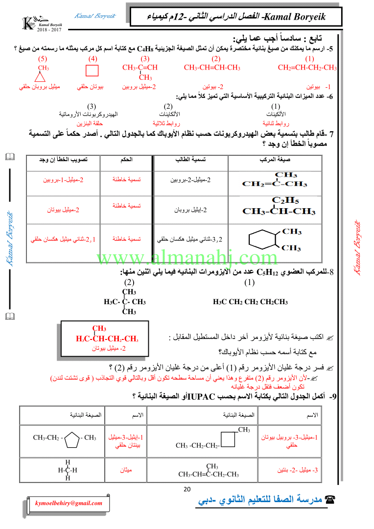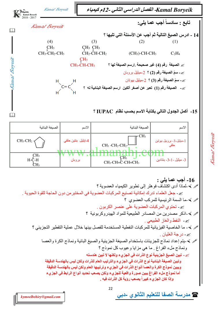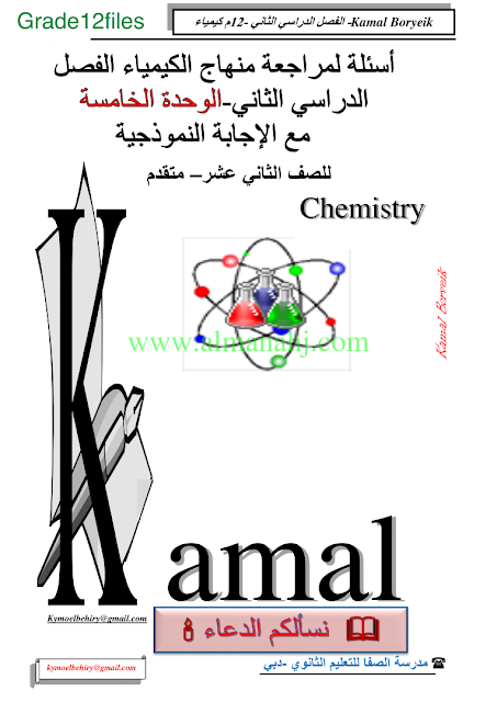 كيمياء اسئلة لمراجعة منهاج الكيمياء الفصل الثاني الوحدة الخامسة مع الاجابة النموذجية | |||