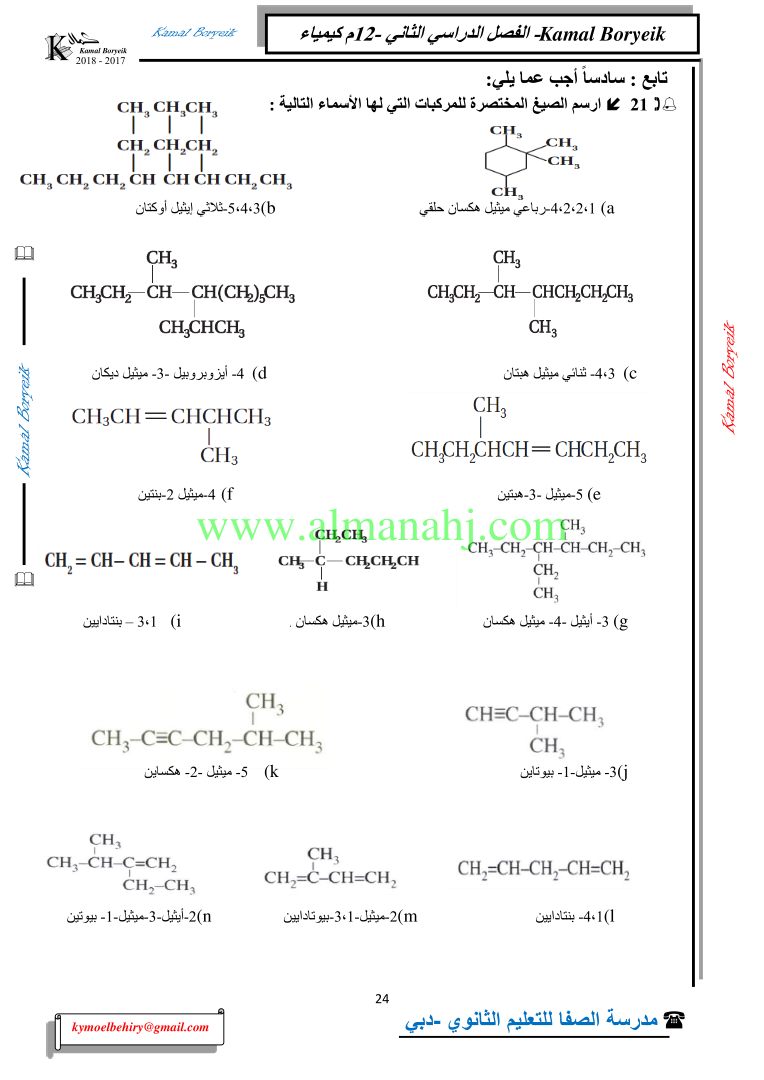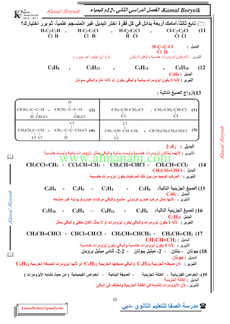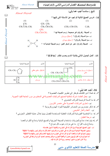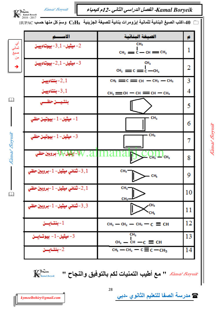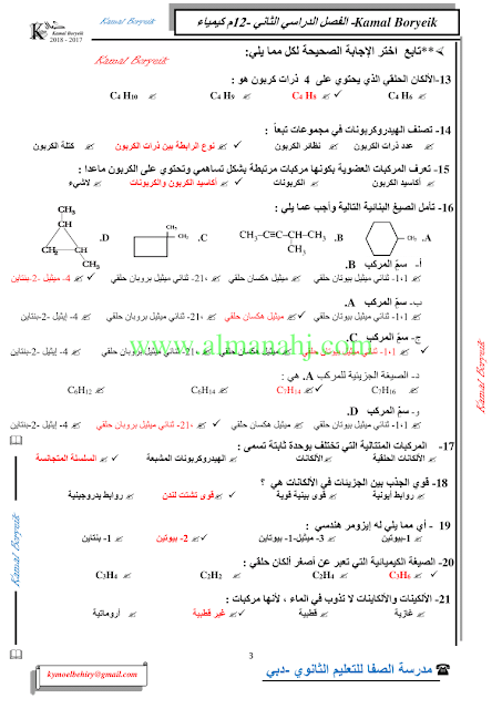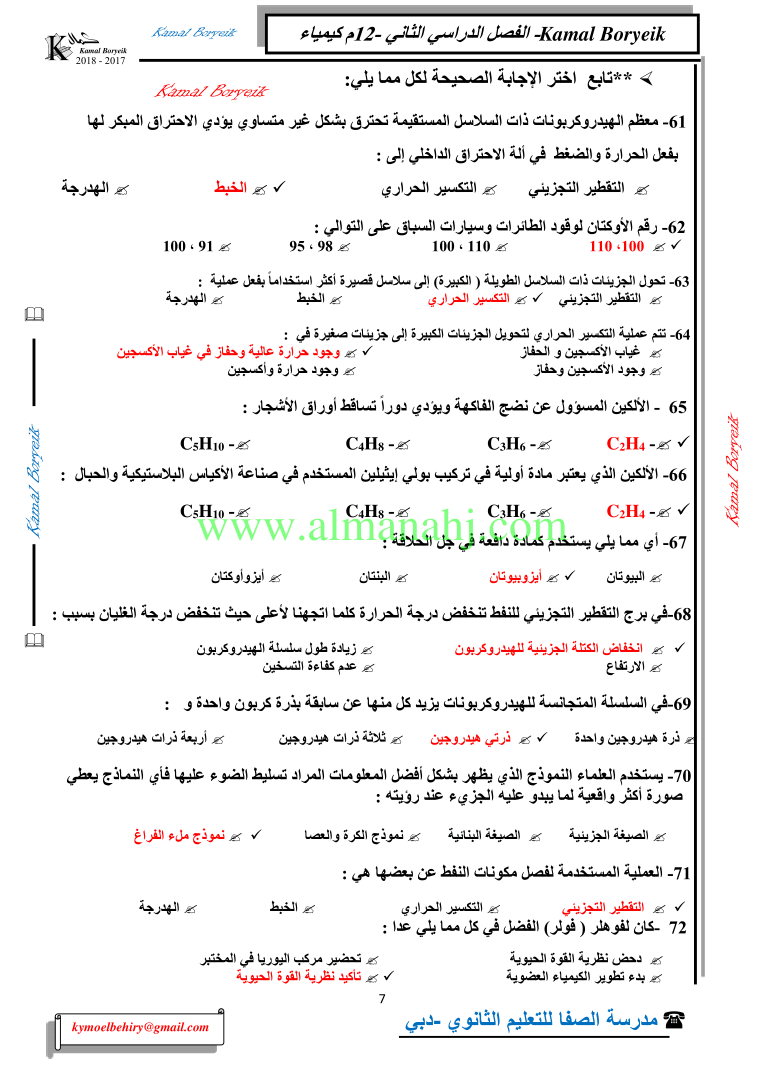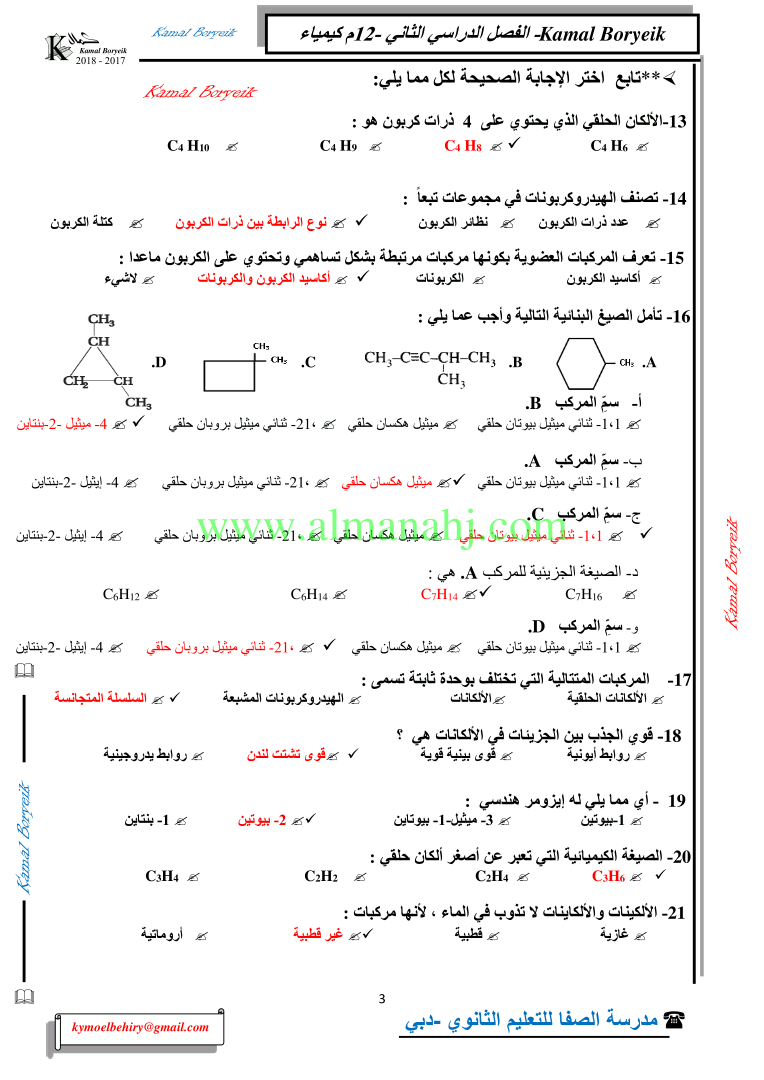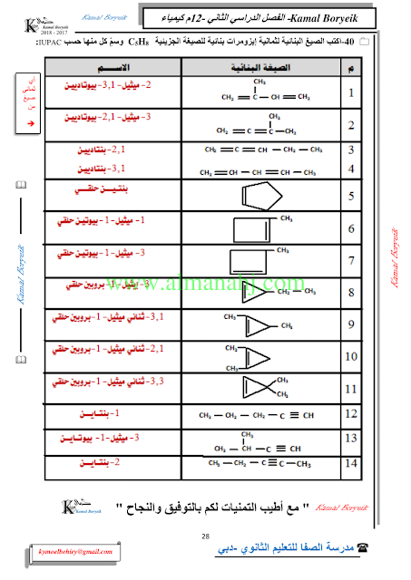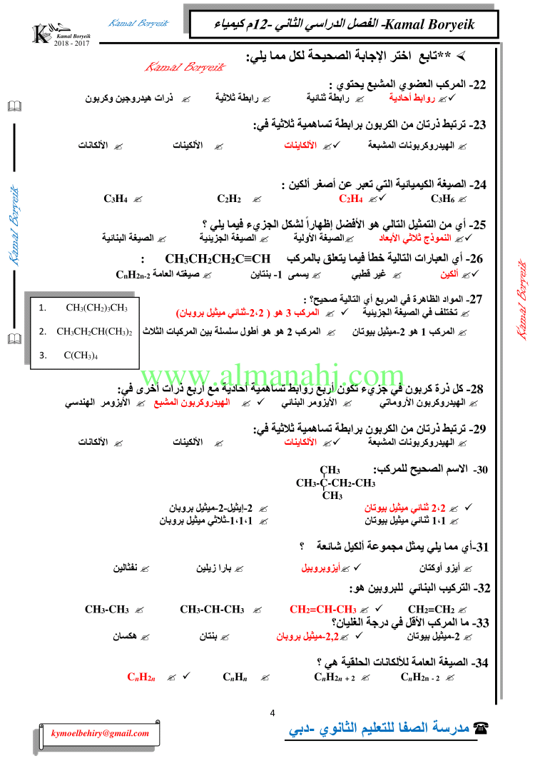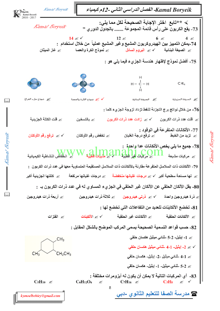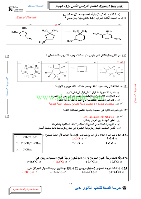 كيمياء اسئلة لمراجعة منهاج الكيمياء الفصل الثاني الوحدة الخامسة مع الاجابة النموذجية | |||