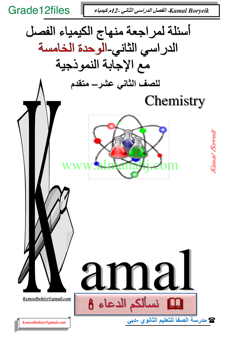 رابط تحميل وعرض ( كيمياء اسئلة لمراجعة منهاج الكيمياء الفصل الثاني الوحدة الخامسة مع الاجابة النموذجية ) | |||