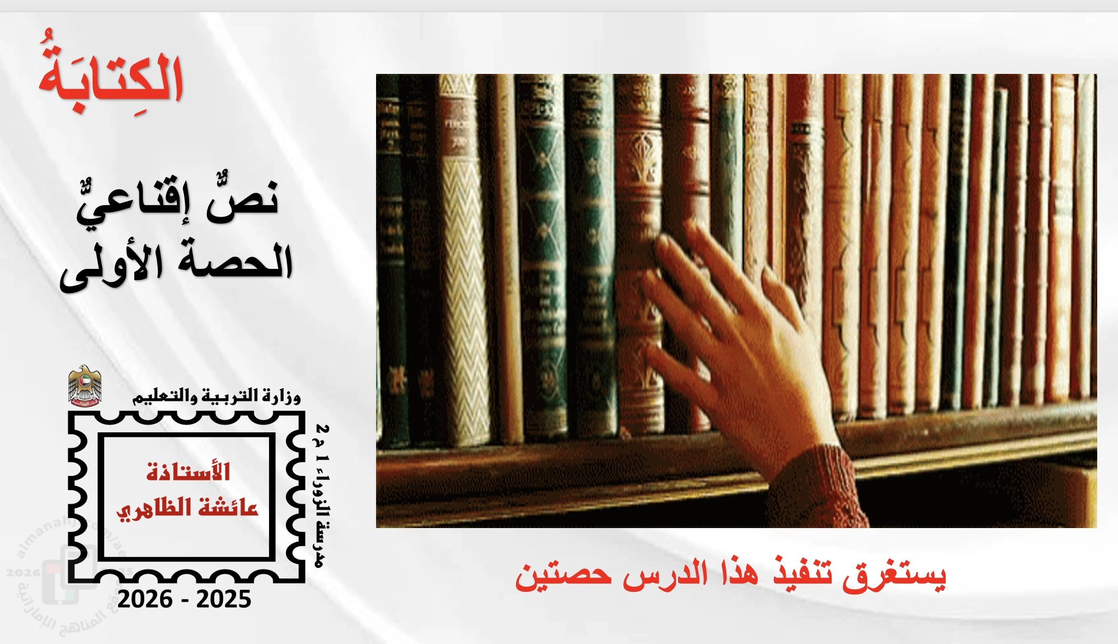 | عرض بوربوينت الكتابة درس نص إقناعي عائشة الظاهري | |||