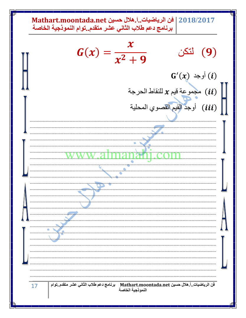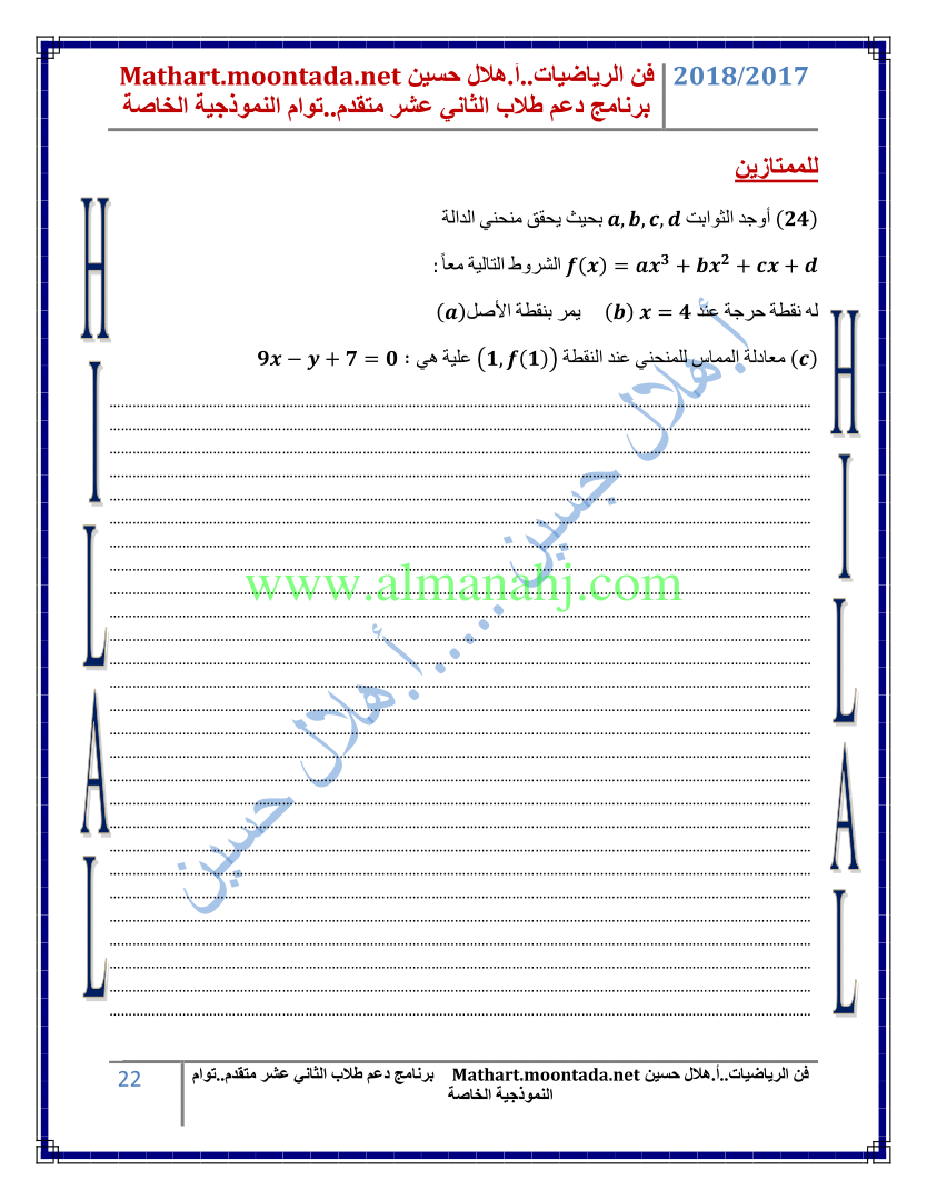 معلومات الملف: الصف الثاني عشر المتقدم, الفصل الثاني, رياضيات, 2017-2018, فن الرياضيات برنامج دعم طلاب الثاني عشر المتقدم | |||
