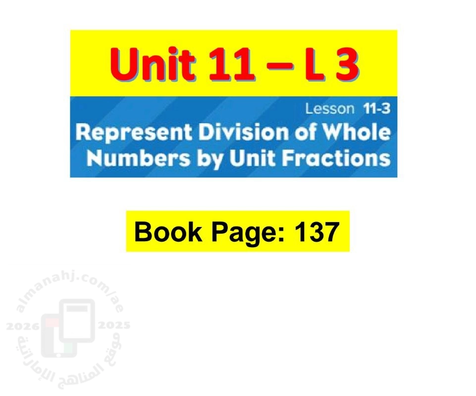 15. الصف الخامس, رياضيات, أوراق عمل الدرس الخامس Represent division of unit fractions by non-zero whole numbers من الوحدة 11 منهج ريفيل
