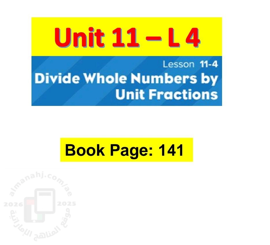 أوراق عمل الدرس الرابع Divide whole numbers by unit fractions من الوحدة 11 منهج ريفيل, Mohamed Ibrahem, الصف الخامس, رياضيات, الفصل الثالث, 2025-2026, منهج انجليزي - المناهج الإماراتية