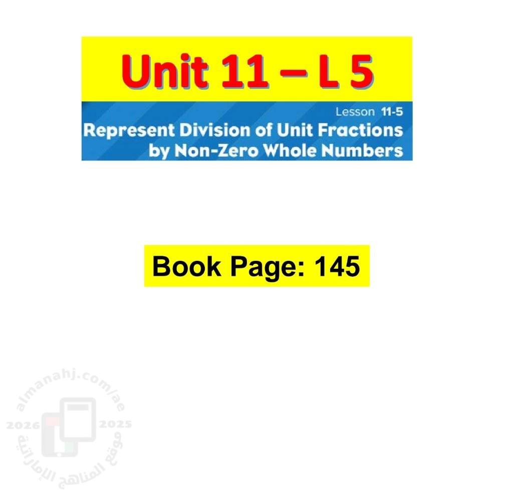 أوراق عمل الدرس الخامس Represent division of unit fractions by non-zero whole numbers من الوحدة 11 منهج ريفيل, Mohamed Ibrahem, الصف الخامس, رياضيات, الفصل الثالث, 2025-2026, منهج انجليزي - المناهج الإماراتية