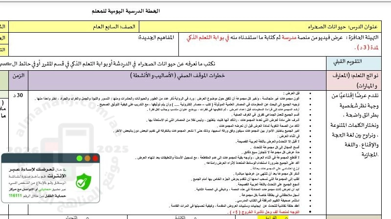 تم إيجاد الملف: تحضير درس حيوانات الصحراء