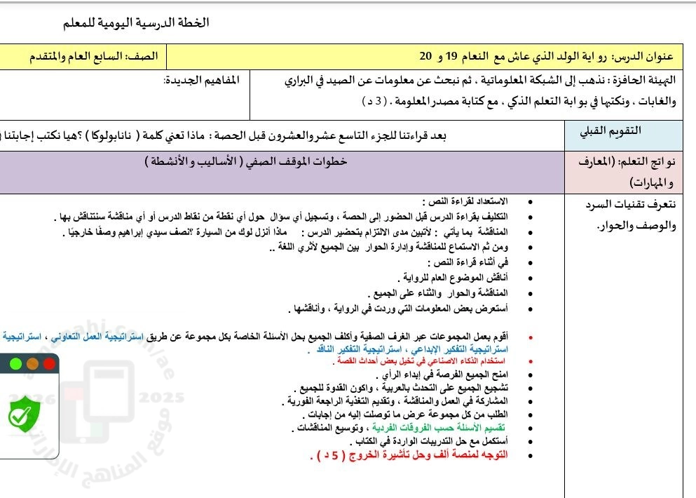 تم إيجاد الملف: تحضير درس رواية الولد الذي عاش مع النعام (19 و 20)