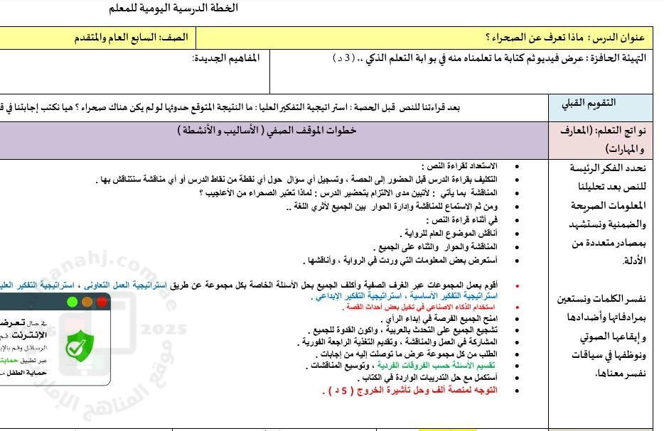 تم إيجاد الملف: تحضير درس ماذا تعرف عن الصحراء ?