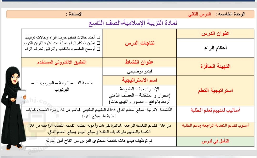 | السابق: تخطيط درس أحكام الراء | الملف الحالي: 39155 | أنت تتصفح الملف الأخير في الصف التاسع | |