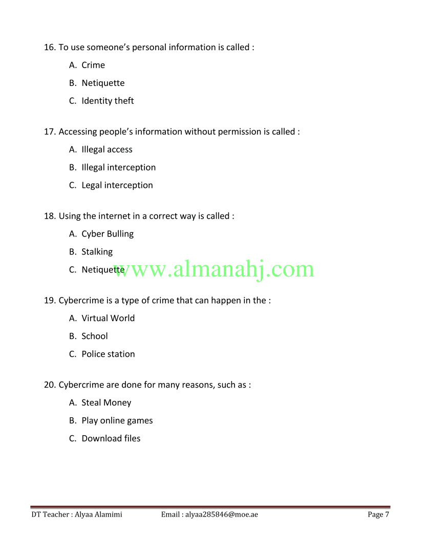 تنويه: المناهج الإماراتية هو موقع مجاني وغير رسمي ولا يتطلب اشتراك لتحميل الملفات، لذلك يرجى عدم دفع أي مبلغ أو الاشتراك من أجل تحميل الملفات. | |