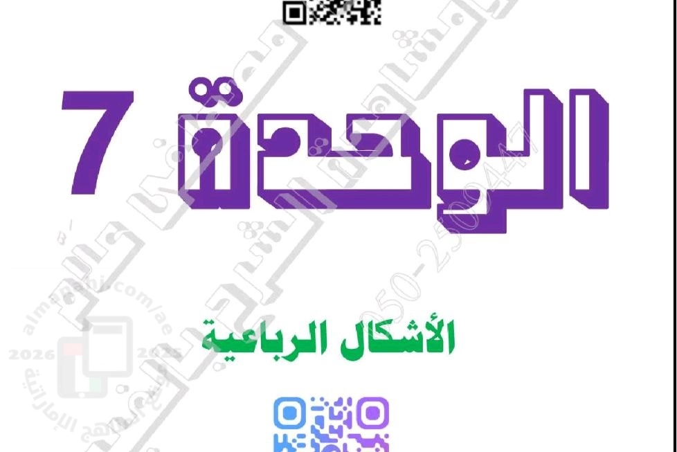 حل أوراق عمل الوحدة السابعة الأشكال الرباعية