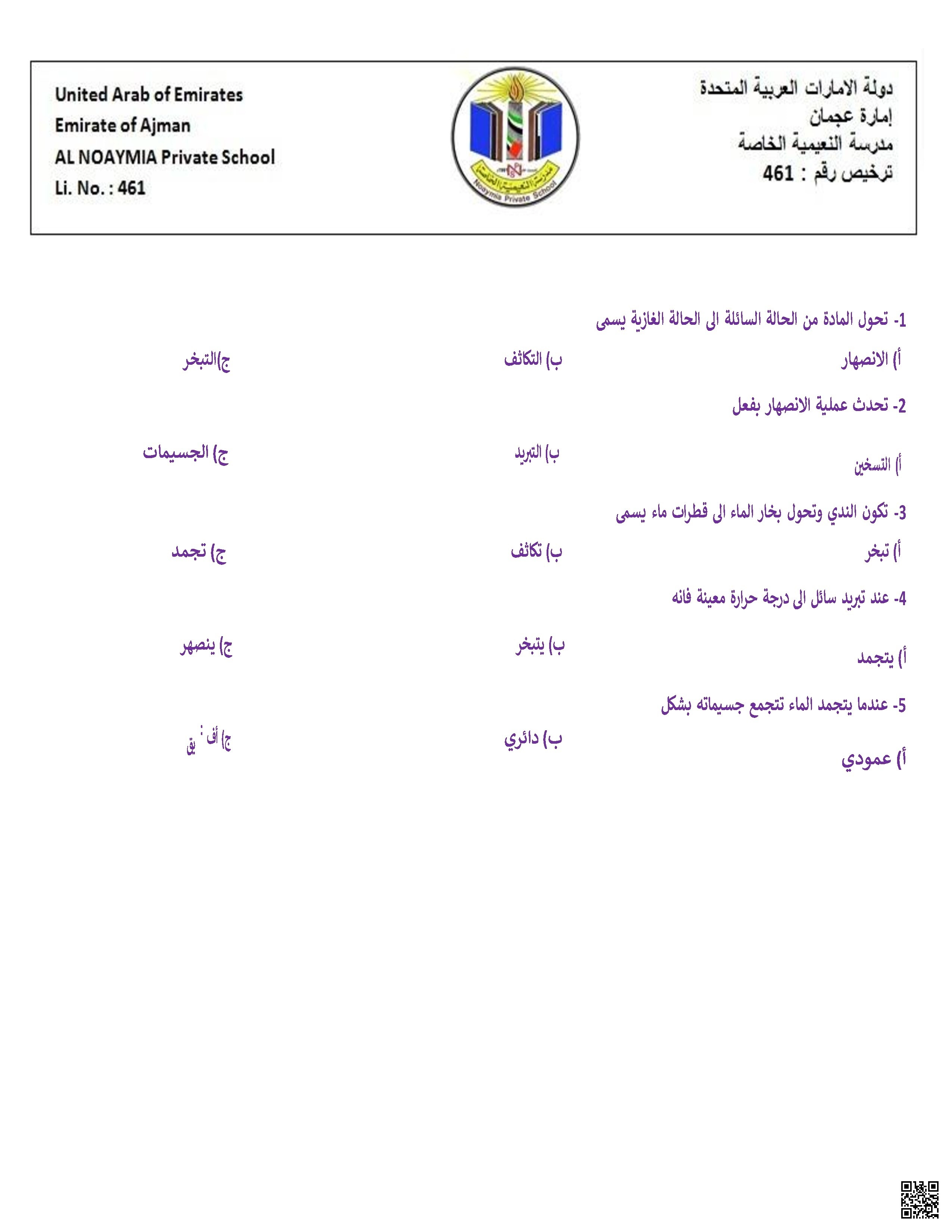 أوراق عمل الدرس الثالث التغيرات الكيميائية من وحدة التغيرات في المادة