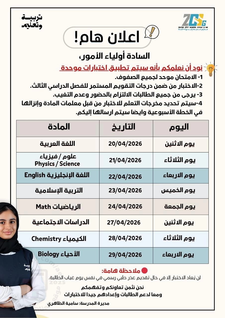 جدول الاختبارات التكوينية الحلقة الثالثة مدرسة الشفاء بنت عبدالله