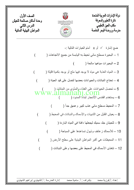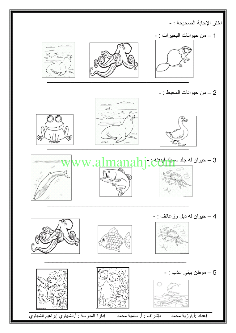 معلومات الملف: الصف الأول, الفصل الثاني, علوم, 2017-2018, وحدة اماكن صالحة للعيش الدرس الثاني المواطن البيئية المائية | |||