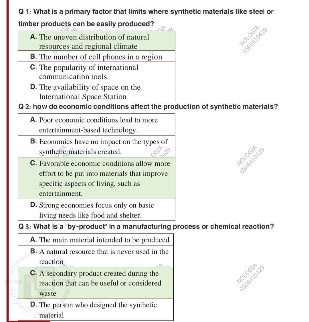 حلول اختبار انسباير المواد التركيبية وتأثيراتها المجتمعية