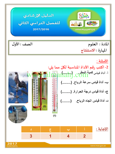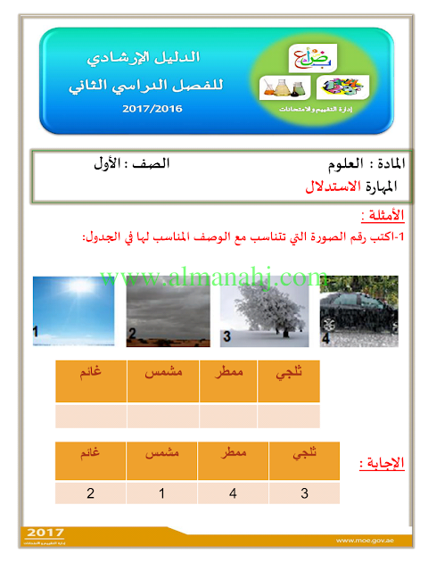 معلومات الملف: الصف الأول, الفصل الثاني, علوم, 2017-2018, الدليل الارشادي للفصل الدراسي الثاني | |||