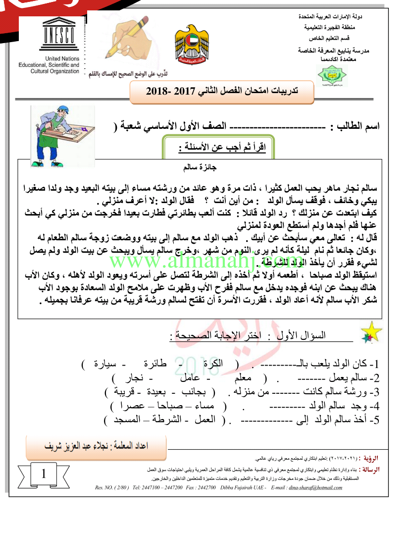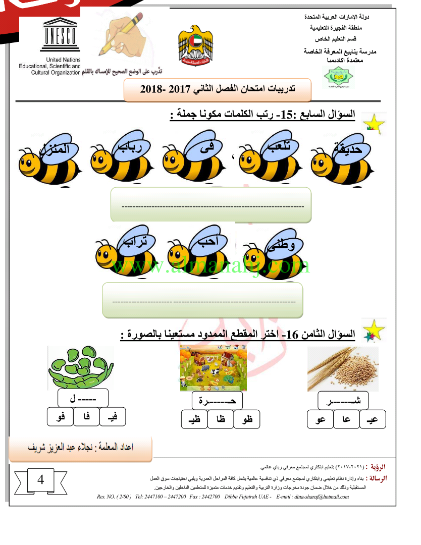 السابق: ثلاث اوراق عمل الطقس | الملف الحالي: 3941 | التالي: مراجعة التقويم الأول من مدرسة عجمان الخاصة | |