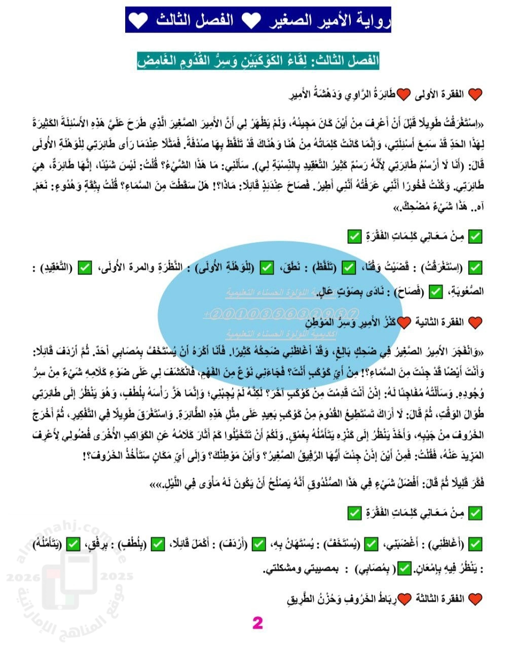 إجابة شرح وامتحان تكويني للفصل الرابع من الأمير الصغير