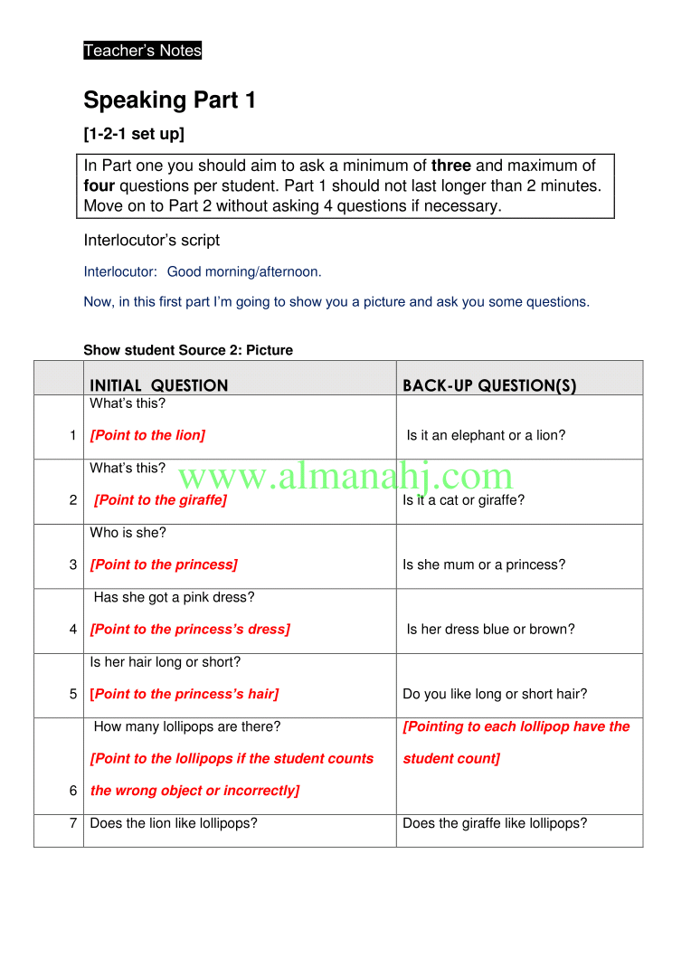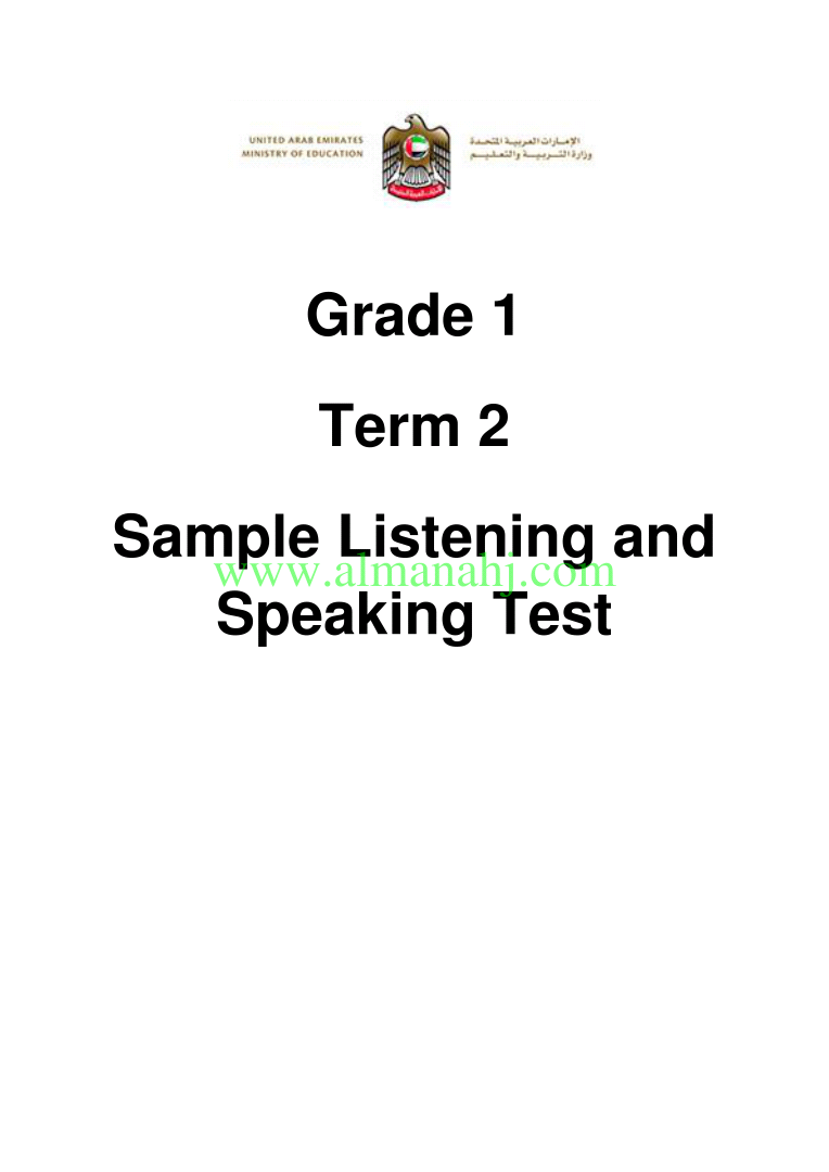 معلومات الملف: الصف الأول, الفصل الثاني, لغة انكليزية, 2017-2018, النموذج الأول لامتحان التحدث: | |||