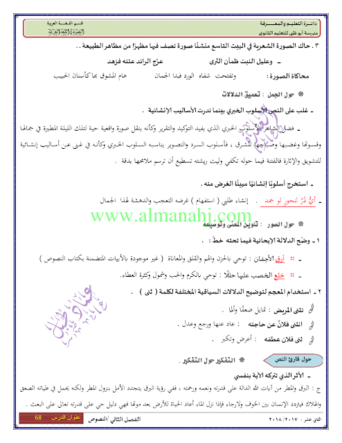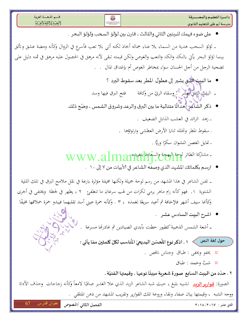 معلومات الملف: الصف الثاني عشر, الفصل الثاني, لغة عربية, 2017-2018, النصوص من الصفحة 65 الى الصفحة 68 | |||