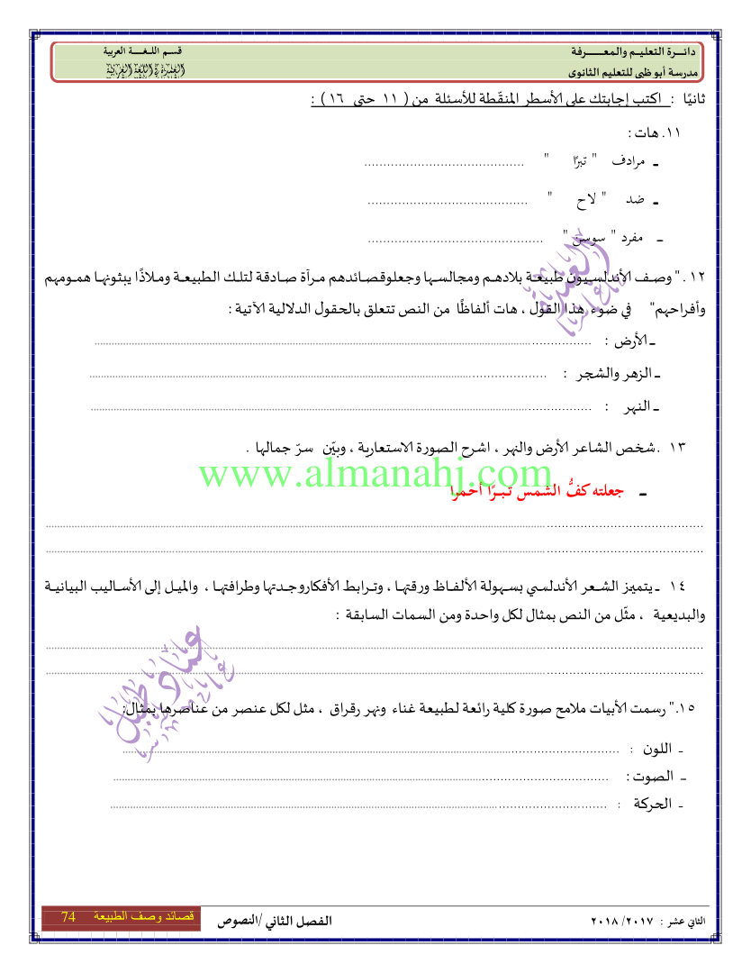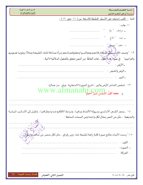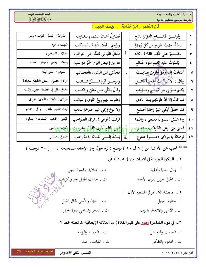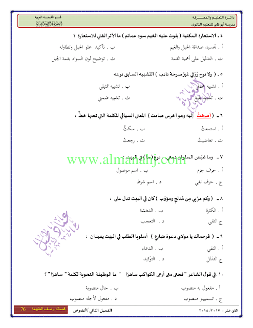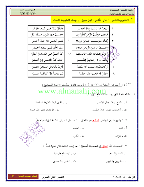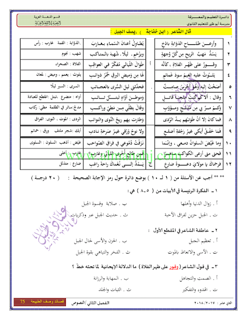 معلومات الملف: الصف الثاني عشر, الفصل الثاني, لغة عربية, 2017-2018, النصوص من الصفحة 69 الى الصفحة 78 | |||